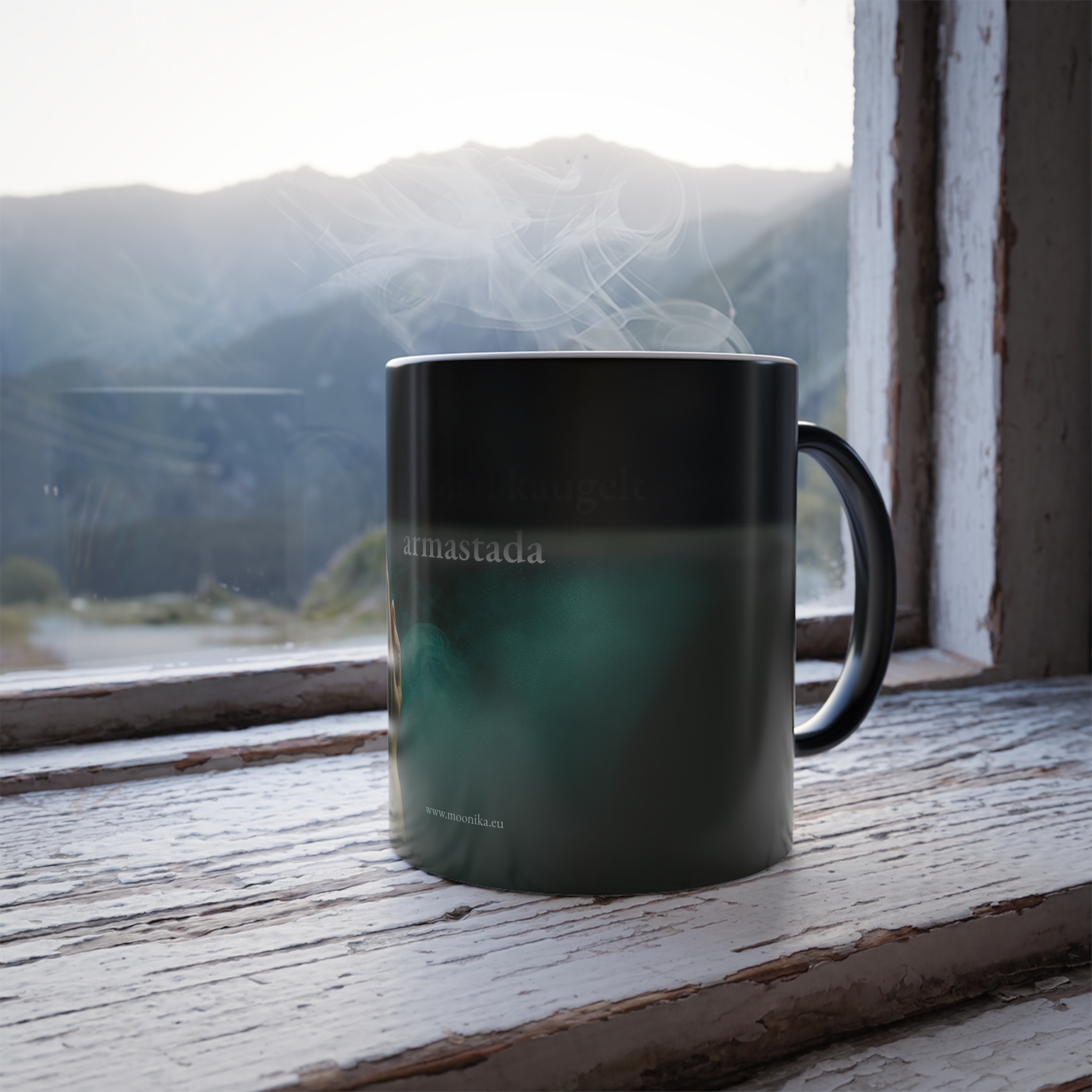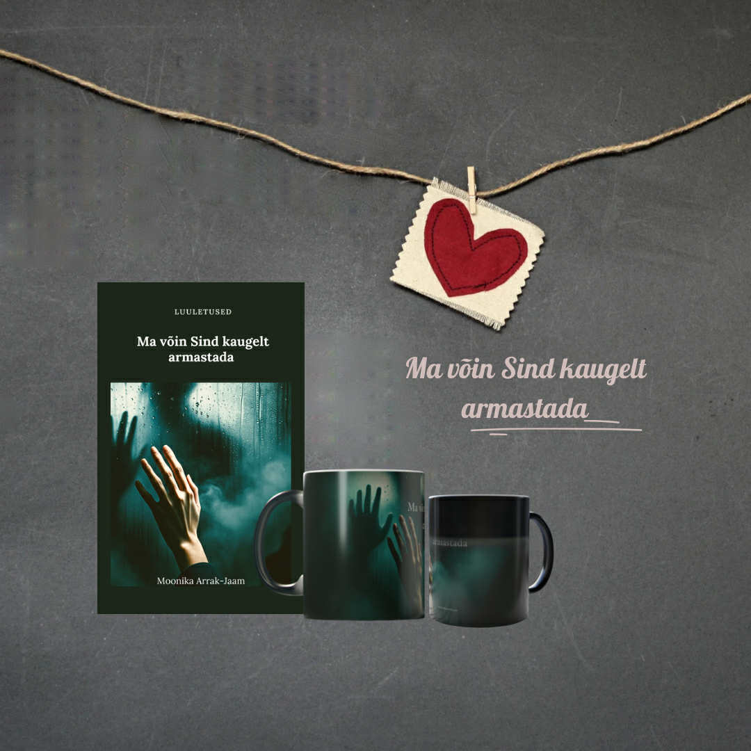 Selles komplektis on luuleraamat „Ma võin Sind kaugelt armastada“ ja värvimuutev kruus.