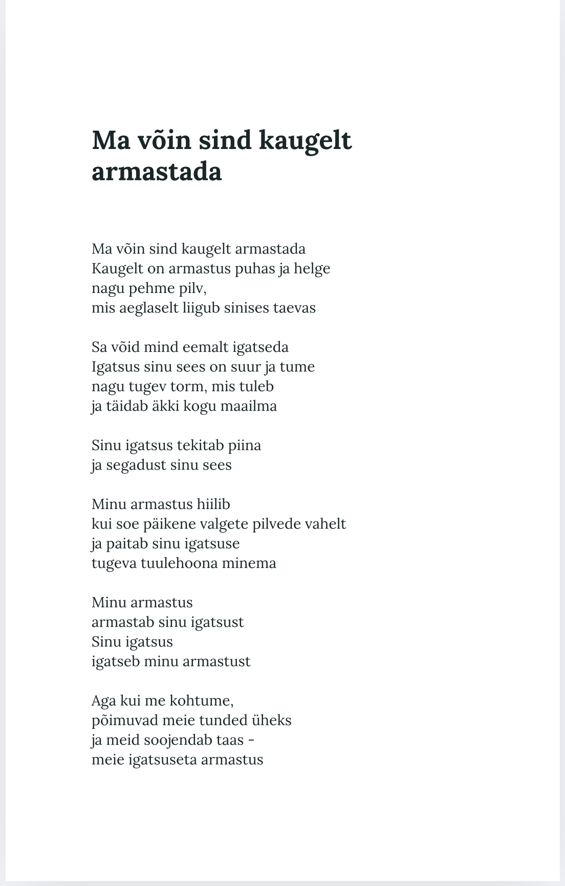 – „Ma võin Sind kaugelt armastada“ (autogrammiga)