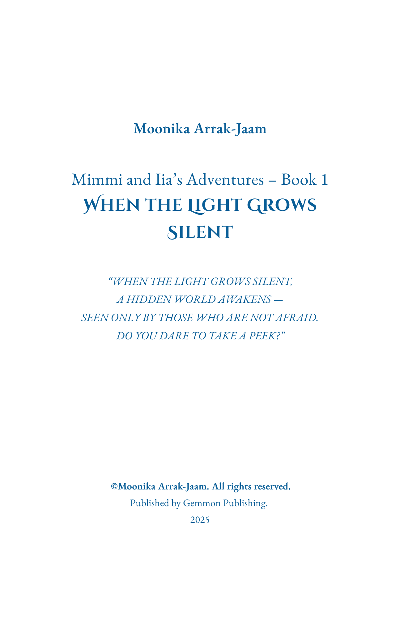 Mimmi and Iia’s Adventures – Book 1: When the Light Grows Silent ( from Amazon )