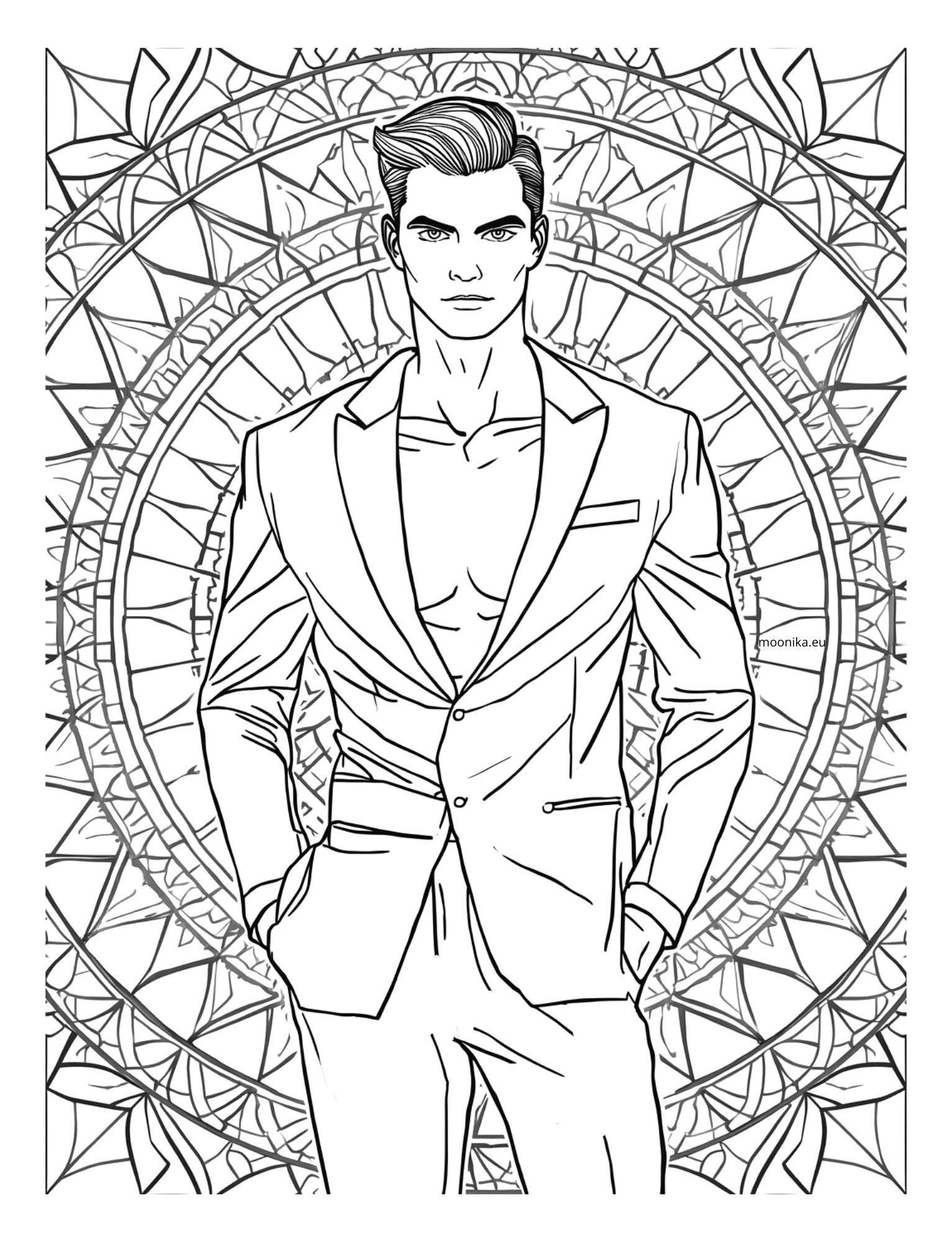 Raamat sisaldab mandalaid, mehiseid kujutisi ning inspireerivate sõnumitega värvitavaid lehti.